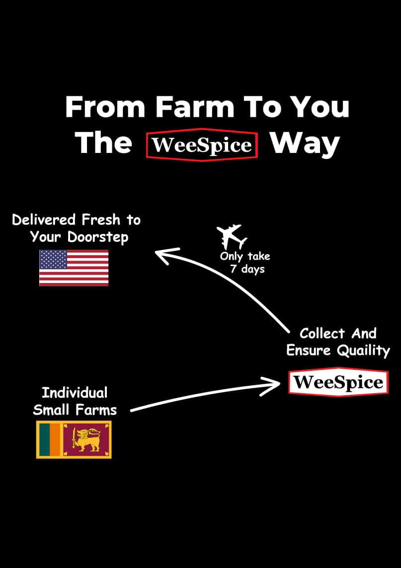 We started WeeSpice to bring this original treasure back to the world. Direct from small Sri Lankan farms, hand-cut and packed fresh, our spices travel straight to your kitchen. No middlemen, no blending, no tricks. Just truth in every jar.
