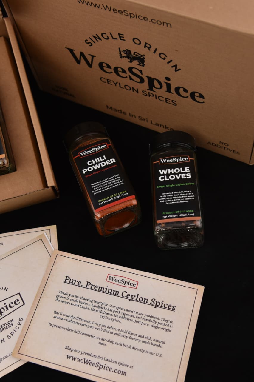 At WeeSpice, we bring the world’s finest single-origin Sri Lankan spices directly from small family farms to your kitchen. Our mission is simple: to restore the true taste of Ceylon cinnamon, pepper, and spices by keeping them pure, natural, and chemical-free. We work hand-in-hand with farmers, pay fair prices, and pack fresh at the source—so every spice you use is authentic, aromatic, and full of life.