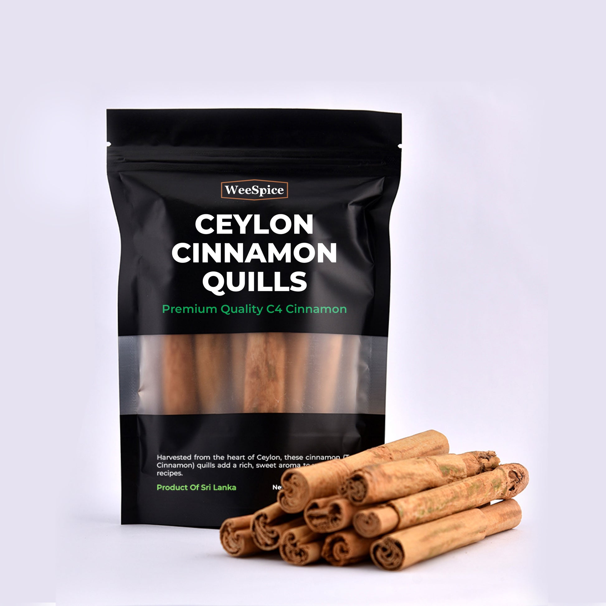 Experience the finest C4 Cinnamon—true Ceylon cinnamon, not cassia—sourced directly from Sri Lankan farms. Our cinnamon is single-origin, hand-harvested, and air-freighted within 7 days to preserve its unmatched freshness and aroma. Known for its delicate sweetness and rich, complex flavor, this authentic Sri Lankan cinnamon is perfect for culinary and wellness uses. Weespice brings you genuine cinnamon quills, harvested at the source and delivered fresh from Sri Lanka to your kitchen.
