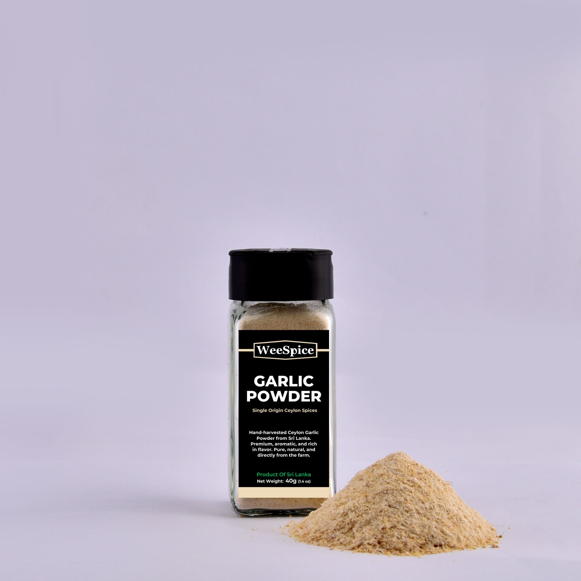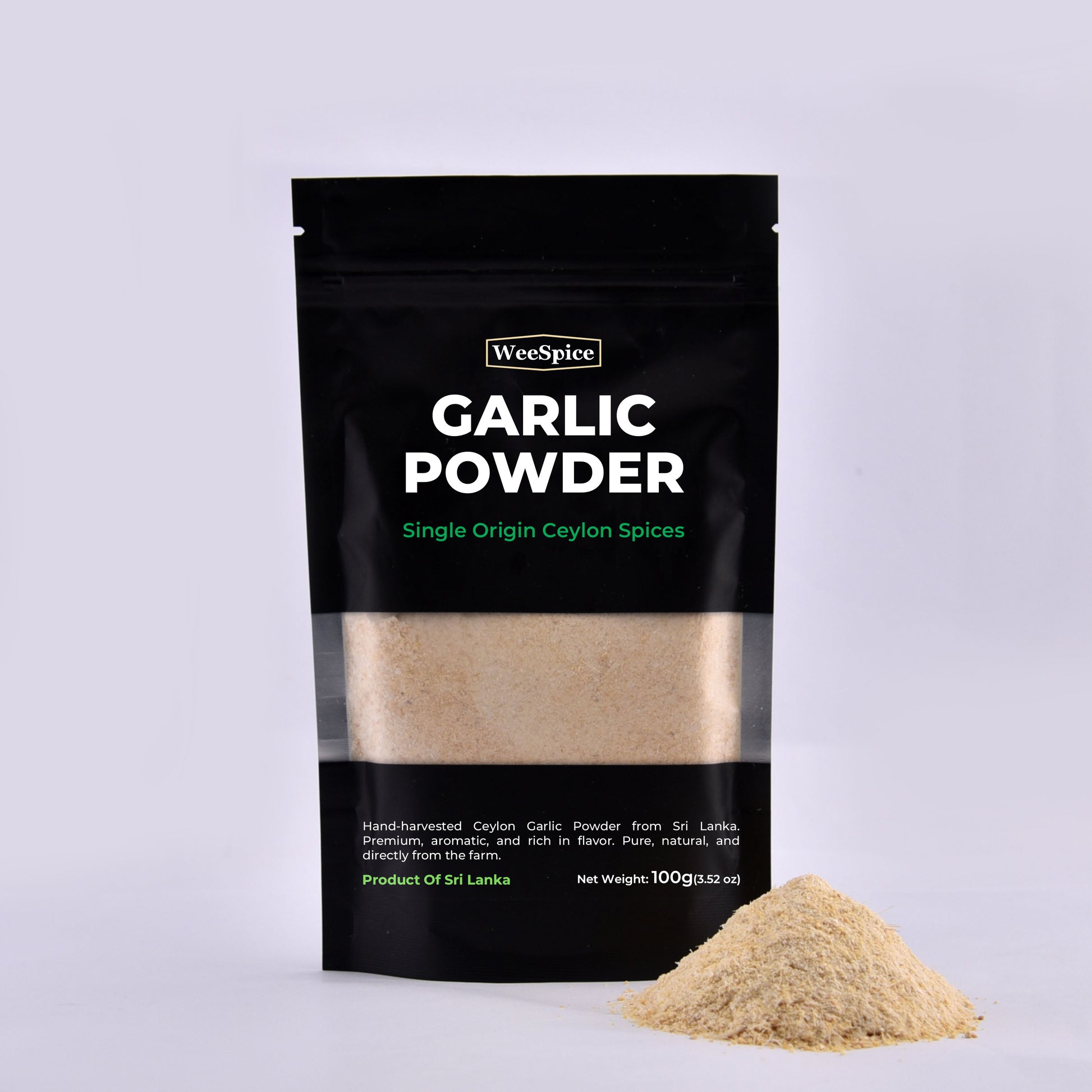 Our Ceylon Garlic Powder is made from finely ground, dehydrated garlic, offering a bold, savory flavor. 100% natural with no additives or preservatives, it's perfect for seasoning, marinades, or spice blends. Bring the authentic taste of Sri Lankan garlic to your dishes with every use.