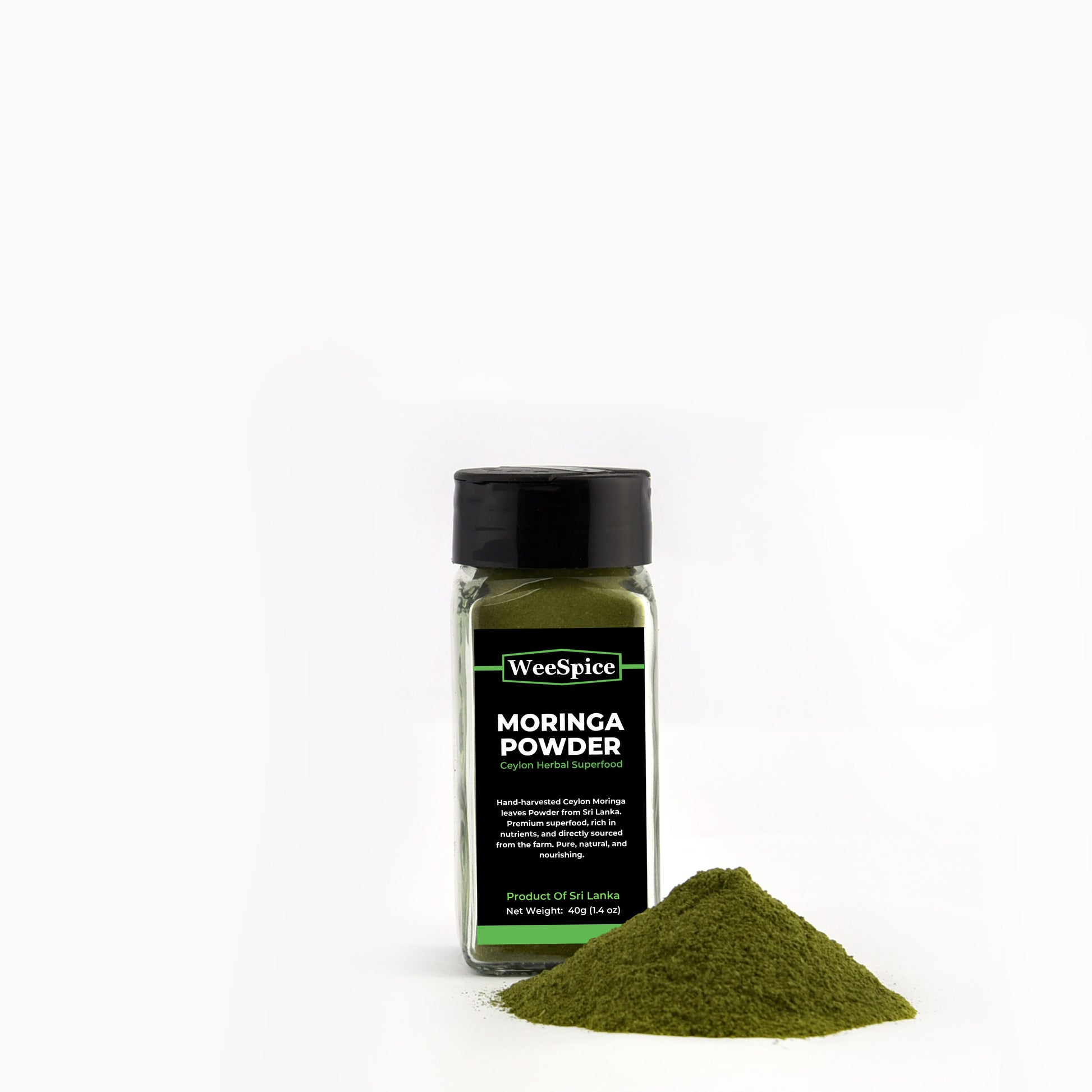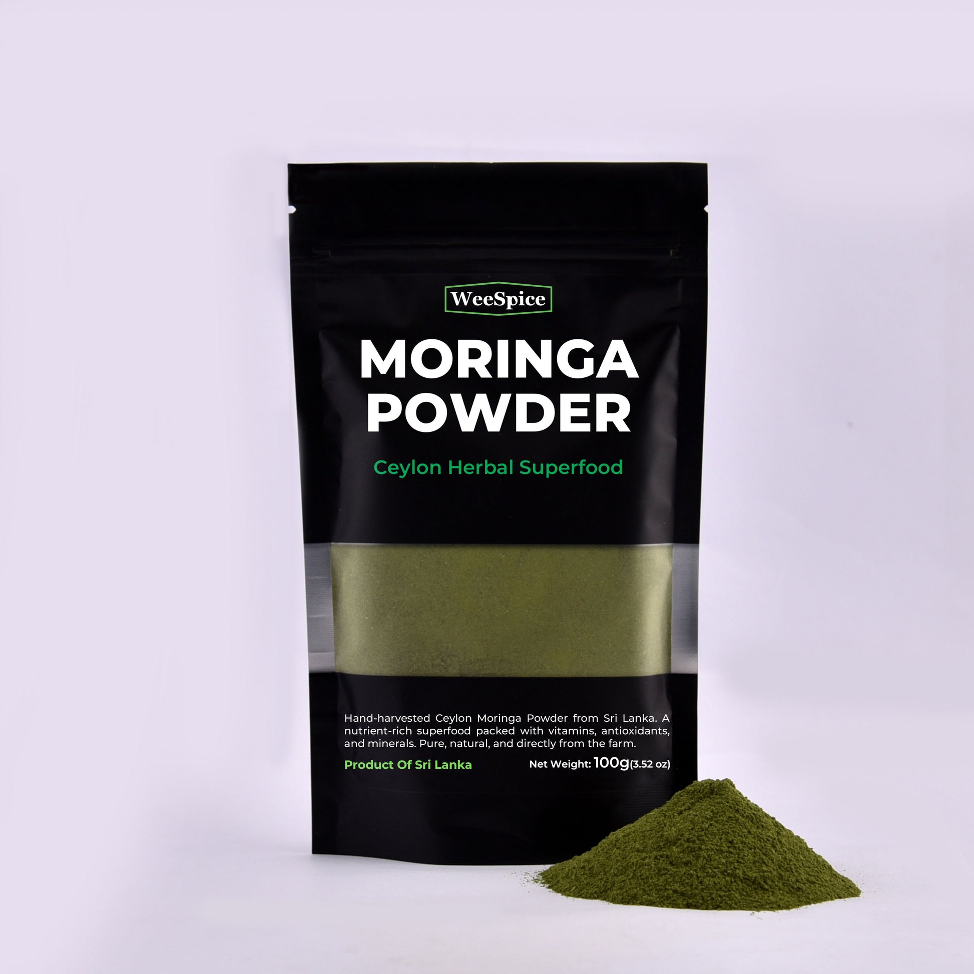 Our Ceylon Moringa Powder is made from the finest moringa leaves, grown and harvested in Sri Lanka. Packed with nutrients, it’s rich in antioxidants, vitamins, and minerals. Ideal for smoothies, teas, or adding to dishes, it's 100% natural with no additives, promoting overall health and wellness.